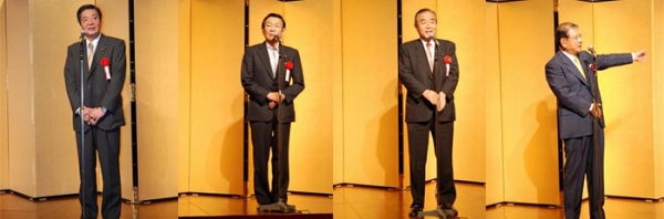 来賓のご挨拶を頂きました。右から順に竹下亘先生・与謝野馨先生・園田博之先生・笹川堯先生